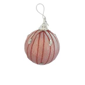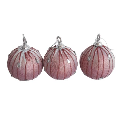 kit com 3 Bolas Decorativas de Natal na cor rose com ocre, estrutura em EPS revestida em tecido com detalhes em pedras.