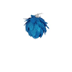 Kit com 3 bolas decorativas de natal azul com 10 cm de diâmetro, confeccionada em PVC revestida com EVA estilo (escama/Pétalas) e glitter.