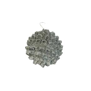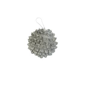 kit com 3 Bolas Decorativas de Natal na cor prata com 6cm de diâmetro, estrutura em EPS revestida com fita de plissada com glitter e mine lantejoulas.