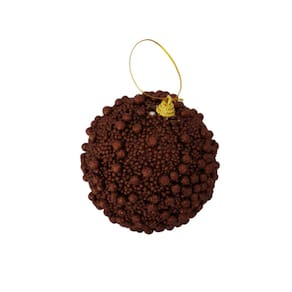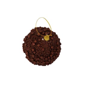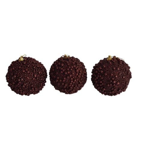 kit com 3 Bolas Decorativas de Natal na cor cobre com 10cm de diâmetro, estrutura em EPS revestida com mine bolinhas de EPS com glitter.