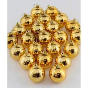 Bolas Dourada Brilhantes Enfeite Árvore Natal 70mm Kit 24pçs -