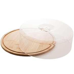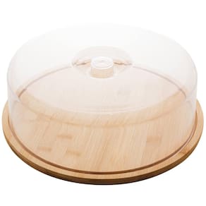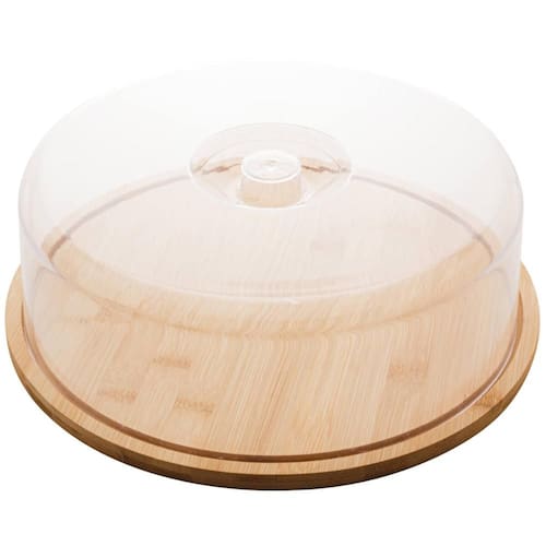Boleira de Bambu com Cúpula de Plástico 28x9,5cm Lyor Porta Bolo Redondo com Tampa.