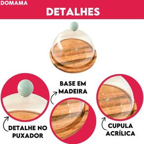 Alça na Tampa: A tampa transparente geralmente possui uma alça no topo para facilitar a remoção e colocação. Base Estável: A base de madeira é robusta e estável, proporcionando uma plataforma segura para o bolo.