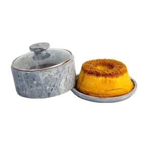 01 Boleira e Queijeira em Pedra Sabão Tampa de Vidro G 13x22cm.