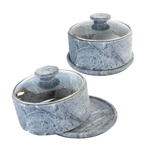 Boleira Queijeira De Pedra Sabão Com Tampa De Vidro