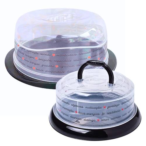 Com visual moderno e cor preta, essa linha combina a versatilidade e estilo. Sua tampa transparente facilita a visualização do produto dentro do recipiente. Sirva deliciosos bolos e queijos com estes itens. Ideal para diversos tipos de mesas, trazendo praticidade e sofisticação. Além de suas cores alegres, que trazem harmonia para suas ocasiões. Durabilidade e resistência que combina com todos os momentos da sua vida.