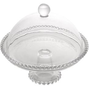 Boleira Wolff Prato para Queijo 19,5cm Cristal com Pé e Tampa Pearl Mesa Posta Incolor