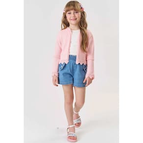Bolero Infantil Kukiê  todo em tricot, fechamento/abertura superior por botão muito lindo, charmoso e uma peça coringa para completar muitos looks! Essa proposta vai deixar a sua princesa ainda mais linda e super bem vestida nas ocasiões mais especiais. Sugestão: Sua princesa poderá combinar as peças Kukiê com botinhas, galochas, sapatilhas ou até mesmo um lindo e confortável tênis, esse é um look muito versátil, sua princesa estará pronta para arrasar em qualquer ocasião, além de estar ainda mais linda e confortável. Uma ótima opção também é aderir acessórios para valorizar o look como tiaras ou laços que vão deixar essa composição ainda mais encantadora e alegre.Marca: Kukiê. Composição: 100% algodãoColeção: Outono/Inverno