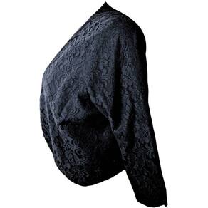 Com mangas 3/4 e detalhes em renda fina, esse bolero oferece um visual clássico e ao mesmo tempo moderno, ideal para combinar com vestidos, blusas ou tops em ocasiões especiais e eventos formais.