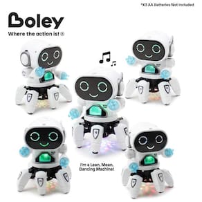 O QUE ESTÁ DENTRO Boley Pioneer Robot em Bright Blue vai iluminar a pista de dança com 3 melodias de dança com graves, uma barriga de bola de discoteca com luzes multicoloridas piscando e um rosto bonito iluminado com braços e pernas que se movem com a música Basta adicionar 3 pilhas AA, desligar o interruptor e ele vai ROCK YOUR BOT Y Meninos e meninas podem dançar o dia todo com o brinquedo Pioneer Robot de Boley O design futurista, porém adorável, inspira as crianças a se envolverem em brincadeiras de alta energia em casa e a explorar os programas STEM na escola E AMIGO DAS CRIANÇAS Na Boley, a segurança das crianças é nossa maior prioridade. É por isso que todo o nosso processo de produção é rigorosamente monitorado pelas organizações mais conceituadas de padrões de segurança infantil, incluindo ASTM, Sedex, ICTI Care e muito mais Marca: Não Informado