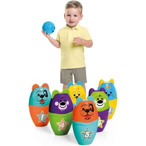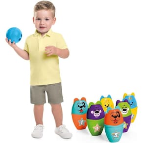 É hora do strike! Para se divertir com toda a família desenvolvendo a atenção e a concentração. O Bolibichos vem com 6 pinos e 2 bolinhas de boliche. Os pinos são personalizados com rostinhos de animaizinhos. E para deixar a brincadeira ainda mais divertida os pinos são desencaixáveis, para explorar A criatividade na hora de jogar, você pode organizar os pinos ou empilhar os rostinhos. Para joga e se divertir, organize os pinos, prepare-se para o arremesso da bola e jogue-a! Se você derrubar tudo: strike! Vence o jogo.