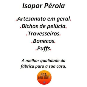 Alguns conhecem como PÉROLAS, outros como BOLINHAS, as pérolas de isopor são ideais para enchimentos de puffs, almofadas, travesseiros, estofados, bonecas, bichinhos, , neve artificial e artesanato. As perolas são muito utilizadas para enchimento por ter uma excelente capacidade de suportar choques e amortecimento. Além de uma matéria limpa não absorvem água e por isso, impedem todo tipo de umidade, não proliferam fungos ou bactérias, eliminando completamente a possibilidade de mofo, não produz cheiro e isso faz com que ele seja o Principal material Utilizado para enchimentos. Em nossa empresa a qualidade do produto está em primeiro lugar. Informações do Produto: Quantidade: 1 saco com 5 litros de Pérolas de Isopor bolinhas . As pérolas possuem em média entre 2 a 5 mm de diâmetro Tamanhos variados . Atenção - Imagens meramente ilustrativa. Marca: Rcaisopor