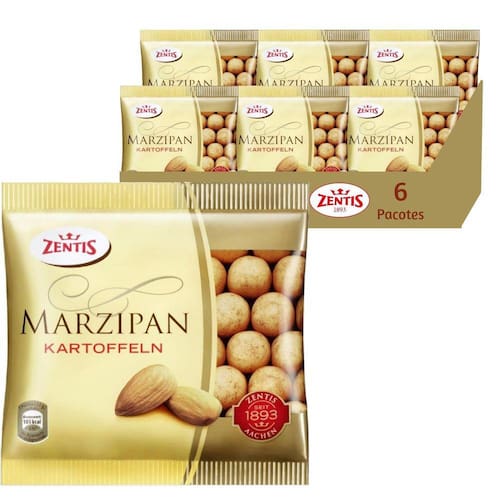 Bolinhas de Marzipan Kartoffeln Zentis 100g 6 pacortes Experimente as deliciosas bolinhas de marzipan com cacau Zentis Feitas com ingredientes da mais alta qualidade, essas bolinhas de marzipan são a escolha perfeita para quem procura um sabor sofisticado e uma textura suave. Cada bolinha de marzipan é cuidadosamente moldada e mergulhada em cacau em pó de alta qualidade, criando uma combinação irresistível de sabores que vão agradar o seu paladar.