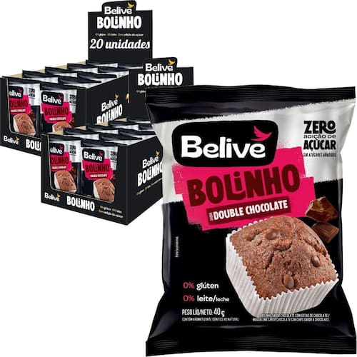 Bolinho BeLive Double Chocolate ZERO 40g 20 unidades Experimente o incrível Bolinho Double Chocolate Sem Açúcar e Sem Glúten da Belive Este bolinho é tão fofinho e saboroso que lembra um bolo de chocolate feito em casa. Com uma combinação perfeita de farinha de quinoa, chocolate amargo e adoçado com estévia, ele é a opção do bem para todos. Sem açúcar, glúten e lactose, é feito com farinha de arroz, quinoa integral e soja não transgênica. Na Belive, acreditamos em oferecer produtos que sejam saudáveis e saborosos, sem abrir mão do prazer de comer. Nosso bolinho é versátil e pode ser aproveitado em vários momentos do dia. Alergênicos: Contém derivados de soja e ovo. Características: Delicioso bolinho com o dobro de chocolate. Sem adição de açúcares. Livre de glúten, lactose e ingredientes transgênicos. Macio e saboroso.Marca: Belive O Bolinho Double Chocolate Sem Açúcar e Sem Glúten da Belive é uma opção perfeita para todos os amantes de sabor e saúde. Desfrute de um bolinho macio, gostoso e versátil em diversos momentos do seu dia