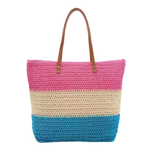 Bolsa Alça Dupla em Palha Sintética Tricolor Nas cores Azul Marinho/Bege/Laranja, Marrom/Bege/Caramelo e Rosa/Bege/AzulTurquesa Material Palha Sintético Fechamento em zíper Alça Dupla em material sintético na cor marrom Forro em tecido Bolso interno Aberto Marca Alice Palucci Medida 48x42x15 (Largura x Altura x Profundidade)