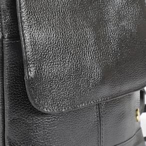 Seu material em couro garante durabilidade e resistência, além de conferir um toque de elegância ao produto. Seu acabamento impecável e detalhes em metal dourado completam o charme dessa bolsa.