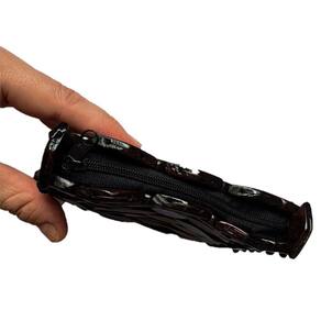 Bolsa Artesanal de Madeira Porta-Moedas, Marrom Escura, com Zíper
