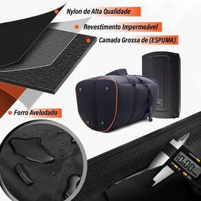 · Produzida com Nylon Impermeável super resistente · 100% preenchida com espuma 7mm de ótima densidade anti impactos · Forrada internamente com tecido aveludado anti riscos · Possui bolso integrado para cabos e acessórios · Possui alças super-resistentes de mão e de ombro · Projetada para suportar até 18 Kg tranquilamente · Fechamento com zíper de alta qualidade