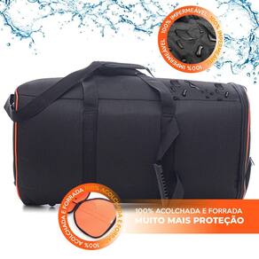· Material externo: Nylon 600 impermeável Preto · Preenchimento: Espuma de PU densidade 45 de 7mm · Material Interno: Forro Laranja de Poliéster/Algodão · Material da Alças: Fitas de poliéster tramado de 40mm · Dimensões da Bolsa: 64 x 36 x 36cm (LxCxA) · Peso da bolsa: 1100 gramas Ean: 7804143698673