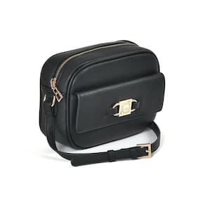 Bolsa Camera bag feita em PU com textura. Possui alça tiracolo ajustável por fivela de metal. Metais personalizados. Bolsa forrada com bolso interno. Abertura com zíper de metal e puxador com logo via marte. Peça principal de metal com logo via marte.