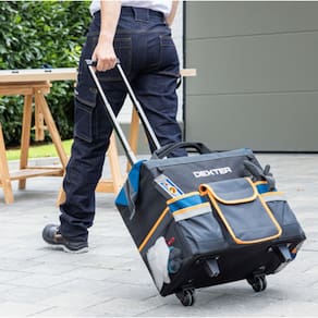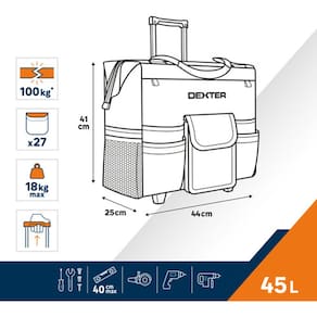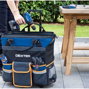 Apresentando a Bolsa para Ferramentas com Carrinho da marca Dexter, um produto feito para facilitar a vida de profissionais e entusiastas do faca-voce-mesmo. Com um design robusto e pratico, esta bolsa e ideal para armazenar e transportar suas ferramentas com seguranca e organizacao. Com dimensoes de 44 x 25 x 41 cm, e compacta o suficiente para ser facilmente manobravel, mas espacosa o suficiente para acomodar uma variedade de ferramentas.