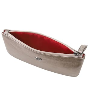 Estrutura do corpo: Construção em couro de espessura média e toque macio. Forro em sarja mista de poliéster e algodão. Logomarca metálica aplicada. Dimensões: 21 x 12 x 01 cm comprimento x altura x largura Peso aproximado: 150 gramas Material: couro