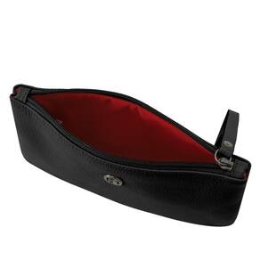 Estrutura do corpo: Construção em couro de espessura média e toque macio. Forro em sarja mista de poliéster e algodão. Logomarca metálica aplicada. Dimensões: 21 x 12 x 01 cm comprimento x altura x largura Peso aproximado: 150 gramas Material: couro