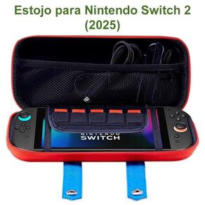 - Compatível com Nintendo Switch 2 2025 - Material rígido e resistente à água - proteção contra impactos, arranhões e respingos - Interior acolchoado com divisórias para console, controles, cabos e cartuchos - Zíper de alta qualidade para fechamento seguro - Alça de mão reforçada para transporte prático - Compacta e leve, cabe facilmente em mochilas ou malas