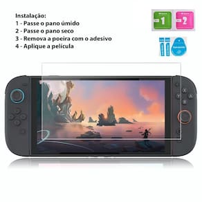 - 1x Bolsa Protetora Rígida para Nintendo Switch 2 - 1x Película de vidro com kit de instalação para Nintendo Switch 2 - 4x grips para analógico Mario, Luigi, Estrela, Vida