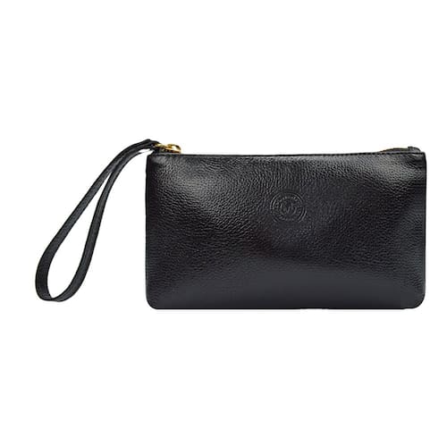 Bolsa clutch, carteira de mão e porta celular em COURO, muito versátil e prática para uso no dia a dia, todos os metais (argola, mosquetões, zíperes, etc) são na cor DOURADA. O fechamento principal é feito com zíper de metal de fácil deslize. Possui alça externa de mão fixa também em couro, durável e resistente. Possui a medida ideal para levar pequenos objetos, carteiras médias, celulares de tamanhos médio e grande, etc. Produto de qualidade para mulheres modernas e exigentes.