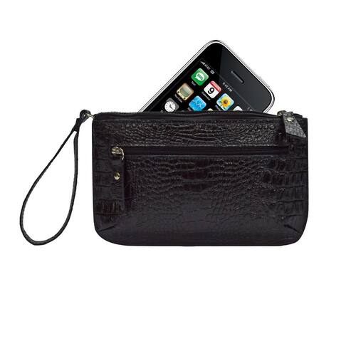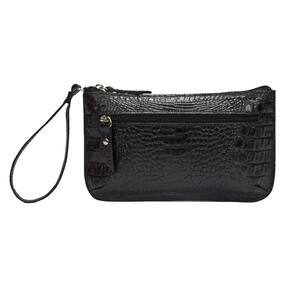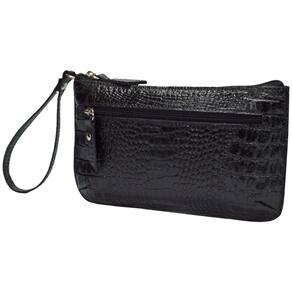 Bolsa Clutch Carteira de Mão Porta Celular Feminina em Couro autêntico Madamix - Preto - P