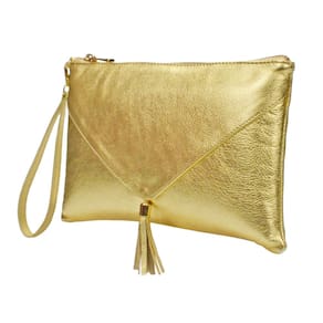 Linda Bolsa Clutch Carteira de Mão ! Uma ótima escolha para finalizar uma produção arrasadora. Bom espaço interno para carregar o essencial. Possui um lindo detalhe com franja de couro para dar uma sofisticação e charme ao produto. Feita em couro, muito versátil e prática, todos os metais (argola, mosquetões, zíperes, etc) são dourados para dar um ar de sofisticação e elegância. Na parte interna possui forro em cetim com textura "animal print", o fechamento principal é feito por zíper para sua maior segurança. Possui alça externa de mão removível. Versátil, pode ser usada desde um evento social até uma festa casual ou balada. Possui a medida ideal para levar celulares grandes, pequenos objetos e o mínimo necessário para seu evento ou passeio.