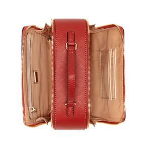 Estilo: Bolsa conversível com alças duplas, bolso frontal externo com botão de pressão e placa com logotipo de metal dourado na frente e dois compartimentos superiores com zíper.