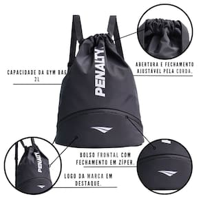 Características: - Abertura e fechamento ajustável pela corda - Bolso frontal com fechamento em zíper - Logo da marca em destaque - Zíper personalizado com o logo da marca - Capacidade da gym bag: 2l - Composição: poliéster - Peso máximo suportado: 8kg - Tamanho: 47x32x16.5 cm