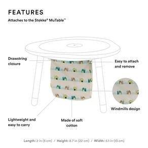 Stokke BagTepees de Armazenamento de Brinquedos - Bolsa de armazenamento de brinquedos – A bolsa de algodão Stokke MuTable é uma bolsa de armazenamento de brinquedos macia que mantém seus acessórios MuTable organizados. Os laços são fáceis de fixar e remover dos ganchos na mesa, e o conveniente fecho de cordão ajuda a evitar bagunças futuras. - Fácil de limpar – Quando colocado sob a abertura central do muTable, é fácil para o seu filho deslizar todos os brinquedos na bolsa de algodão e então a arrumação é feita. Torna a limpeza divertida! - Estrutura leve – Leve e fácil de transportar, a bolsa de algodão MuTable é o acessório ideal para armazenar e organizar brinquedos pequenos e médios. Disponível em uma ampla variedade de cores e padrões divertidos para complementar sua sala de jogos. - Design com um propósito – a Stokke entrou no setor de móveis e acessórios infantis em 1972 e, desde então, todos os nossos produtos foram projetados para desafiar o comum, promover o desenvolvimento saudável e estimular o vínculo familiar.
