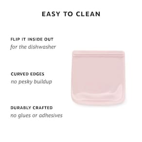 W&P Bolsa de armazenamento reutilizável de silicone Porter, sanduíche (plano de 1000 ml), blush, recipiente de armazenamento de alimentos, seguro para micro-ondas e lava-louças, fácil limpeza - SEM PLÁSTICO: Sacos de silicone 100% de grau alimentício construídos com 1 peça de silicone, sem produtos químicos, colas ou adesivos; os materiais excedem os padrões alimentares dos EUA e são seguros para lava-louças, micro-ondas e freezer - Uma bolsa melhor: a família americana média usa 500 sacos plásticos descartáveis por ano — a bolsa Porter pode mudar isso; a frente transparente permite que você visualize e marque a data e o conteúdo, um toque de cor no painel traseiro adiciona elegância - Limpa e higiênica: como a bolsa Porter é feita de uma peça de silicone e tem bordas curvas (sem cantos afiados), você não terá nenhum acúmulo irritante e mofado; Além disso, você pode virar a bolsa do avesso para limpar e/ou colocá-la na máquina de lavar louça - TAMANHO PERFEITO: O saco de 970 ml é ideal para segurar um sanduíche, ingredientes congelados de smoothie ou embalar um punhado de batatas fritas e biscoitos; congele restos e cascas para caldos - Não pare por aí: use a bolsa para vapor, sous-vide, micro-ondas, congelar ou cozinhar em um forno ou Insta-Pot; também é ótimo para armazenar maquiagem, um kit de primeiros socorros portátil ou lenços em sua bolsa — reduza sua pegada de plástico de uso único com estilo