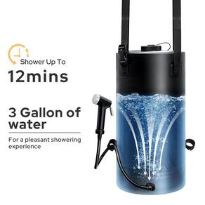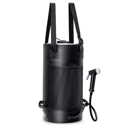 SPACEREST Bolsa de chuveiro portátil para acampamento, 10 litros - ?Design patenteado - aplicação US D1056133? - ?Bolsa de chuveiro com aquecimento solar?Nossa bolsa de chuveiro é feita de material preto absorvente de calor, quando a temperatura externa é de 30 °C, levará cerca de 3 horas para aquecer a água a 40 °C sob luz solar direta total. Ao acampar ao ar livre, você só precisa colocá-lo em pleno sol e, quando voltar, poderá desfrutar de um banho quente. (O aquecimento solar está relacionado ao clima, e a temperatura máxima do saco de água será de 5 °C a 10 °C maior do que a temperatura externa) - ?Material espesso durável?O produto é feito de PVC espesso de três camadas e material de lona, mais durável à prova de rasgos e à prova de vazamentos, ecológico, seguro, sem odor. Design de reforço de alça dupla, suporte para pendurar o saco de banho pesado em uma árvore ou outro suporte alto o suficiente. - ?Bolsa de chuveiro portátil?Capacidade de até 11 litros/11 L com um grande bolso de malha de armazenamento, permite que você desfrute de um banho melhor e refrescante em qualquer lugar. Design compacto e leve que você pode carregar na bagagem, mochila, porta-malas do carro. - Design com indicador de temperatura: bolsa de chuveiro equipada com indicador de temperatura, exibição de temperatura da água em tempo real. Seja capaz de saber quando a água está na temperatura perfeita para tomar banho. - ?Bolsa de banho externa de vários usos?Adequado para banho interno/externo, acampamento, surf, caminhadas, viagens, banho infantil, limpeza de animais de estimação, irrigação de plantas. Ótimo ideal para a família e amigos no Natal, Dia dos Pais, Dia das Mães, etc