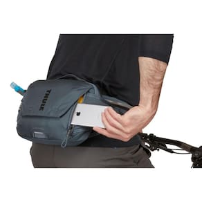 A Thule Rail 4L é uma bolsa de hidratação para cintura inteligente que mantém você hidratado sem perder o ritmo na trilha. A mangueira de hidratação Thule ReTrakt tem um design magnético que volta automaticamente para o lugar entre um gole e outro. Isso ajuda você a manter a hidratação sem desviar a atenção da trilha. Esta bolsa de hidratação de cintura também oferece estabilidade superior e materiais respiráveis para proporcionar um passeio confortável, e os elementos reflexivos e as alças para luz de bicicleta aumentam a visibilidade à noite. Acesse seu telefone facilmente com apenas uma das mãos e sem sair da bicicleta e guarde ferramentas e lanches nos bolsos internos organizados. Essa bolsa de hidratação é uma adição perfeita para seus passeios de 1 a 3 horas.