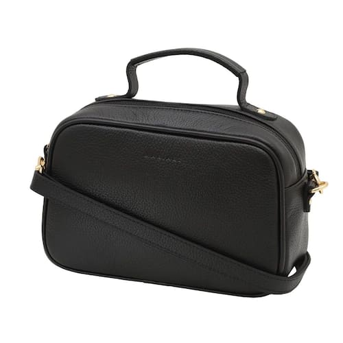 Estrutura do corpo: Construção em couro de espessura média e toque macio. Forro em sarja mista de poliéster e algodão. Logomarca gravada na parte frontal. Dimensões: 20 x 13 x 07 cm largura x altura x espessura Peso aproximado: 200 gramas Material: couro
