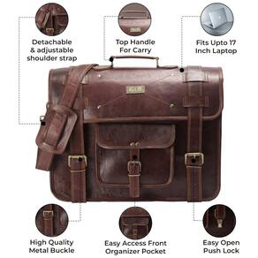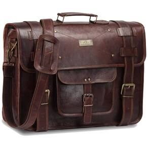 Importado Tamanho aproximadamente 18 x 13 x 5 polegadas, 45 x 33 x perfeito para documentos, laptop , notebook, netbook ou iPad dentro de 3 compartimentos enormes com 2 bolsos com zíper 1 bolso externo na frente. Couro de cabra forte mas flexível com tratamento natural e forro de lona resistente no interior Marca: Não Informado