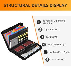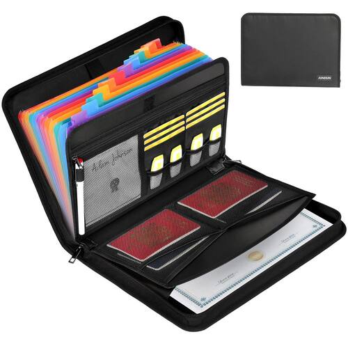 - Capacidade expandida: descubra a facilidade do sistema de pastas de 12 compartimentos da Jundun. Com 13 bolsos, 1 bolso com zíper, 1 caneta e 6 compartimentos para cartões, bem como 4 bolsos de malha pequenos e 4 médios, todos cuidadosamente alojados em uma moldura simplificada de 35,5 x 26,5 x 5 cm. Mantenha documentos e pertences importantes em segurança Você pode facilmente categorizar e acessar seus arquivos rapidamente.