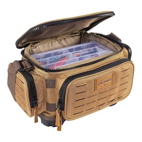 Plano Bolsa de equipamento Guide Series 3500, bege, inclui 5 caixas de organização 3500 Stowaway, armazenamento macio de equipamentos de pesca, à prova d'água e base antiderrapante