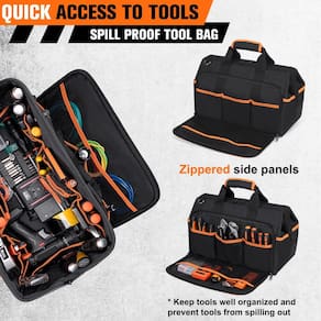Esta bolsa de ferramentas é projetada para atender a uma ampla variedade de necessidades, tornando-a adequada para profissionais, entusiastas de bricolage e vários setores. Seja para construção, tarefas automotivas ou reparos domésticos gerais, ela se adapta sem esforço a diferentes requisitos. A bolsa de ferramentas vem com uma alça de ombro e uma alça acolchoada macia, adequada para uso em diferentes ambientes de trabalho, fácil de transportar e pode efetivamente aliviar a fadiga das mãos e a pressão do ombro. Seus quatro pés de borracha antiderrapante na parte inferior melhoram a estabilidade e evitam movimentos acidentais em vários locais de trabalho, incluindo locais de construção, trabalhos elétricos, trabalhos de encanamento, serviços de HVAC e muito mais. O design de boca aberta adiciona conveniência, permitindo que você acesse rapidamente suas ferramentas conforme necessário - ?26 bolsos e grande capacidade? - Independente das bolsas de ferramentas típicas de 30,5 a 40,6 cm, nossa bolsa de ferramentas atualizada de 43,9 cm tem 26 bolsos (44 cm C x 24 cm L x 29 cm A), incluindo 18 bolsos internos e 8 externos, oferecendo amplo espaço para organizar uma variedade de ferramentas do dia a dia - ?Bolsa dobrável e alças de ombro ajustáveis? - Atualize seu armazenamento de ferramentas com nosso organizador de bolsa de ferramentas dobrável, projetado para economizar espaço e fornecer opções de armazenamento convenientes. As alças de ombro ajustáveis oferecem conforto personalizado para homens de diferentes alturas, e a alça ergonômica torna o transporte de ferramentas pesadas fácil e agradável - ?Resistente e de alta qualidade? Feita de tecido Oxford 1680D durável e de alta qualidade com tecido de camada dupla, esta bolsa de ferramentas grande é resistente a perfurações, à prova d'água, leve e rígida. Os zíperes e acessórios de metal resistentes e de alta qualidade o tornam adequado para vários ambientes de trabalho e podem suportar uso a longo prazo - ? Pés de borracha antiderrapantes que aumentam a altura? - Esta bolsa de ferramentas resistente possui quatro pés de borracha antiderrapantes (1,48 cm A) na base da bolsa de ferramentas artesanal para proporcionar estabilidade e evitar qualquer movimento acidental em qualquer ambiente de trabalho. Isolando efetivamente água e sujeira, eles garantem que seu equipamento permaneça limpo e seco - ?Boca ampla e design de abertura lateral? Nossa bolsa de ferramentas grande (24 cm) possui ampla abertura de zíper e design de zíper no painel lateral para facilitar o carregamento e acessibilidade rápida da ferramenta. O interior espaçoso pode acomodar todos os tipos de ferramentas, garantindo o armazenamento conveniente de todos os itens essenciais - ?Ampla aplicação? Nossas bolsas de ferramentas masculinas oferecem amplo espaço de armazenamento para eletricistas, encanadores, carpinteiros, técnicos automotivos e entusiastas de bricolage, tornando-as a escolha ideal para profissionais e amadores