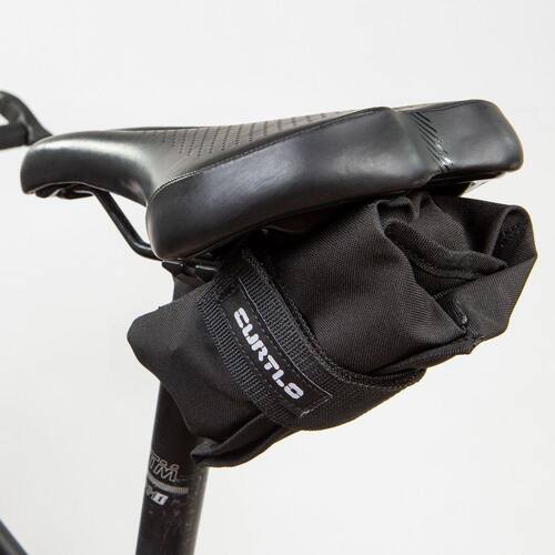 Bolsa compacta tipo envelope com seis compartimentos para ser fixada no selim ou quadro da bike. A fixação é através velcros. Com capacidade para transporte de um kit de reparos, câmara de ar, cilindro CO², espátulas, ferramentas, entre outros pequenos objetos. Possui formato envelope que, quando aberto, facilita o manuseio, e fechamento tipo Roll que mantém as ferramentas limpas e secas.