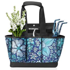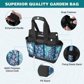 WORKPRO Bolsa de ferramentas de jardim, 9 bolsos, bolsa de armazenamento de ferramentas de jardim Oxford resistente, suporte de kit de ferramentas de jardinagem (ferramentas não incluídas), 30,5 x 30,5 x 15,2 cm (azul floral)) - Material durável: esta bolsa de jardim é feita de tecido de poliéster 600D de alta qualidade com materiais macios, que é muito macio e durável - Bolsa de armazenamento aprimorada para jardim: a parte inferior desta bolsa é reforçada com placa de PE, mantendo a bolsa de ferramentas na vertical, mais estável e não deformada. A alça antiderrapante é confortável e macia, reduzindo a fadiga ao transportar - Grande capacidade: o tamanho interno de 30 cm x 30 cm x 15 cm oferece espaço suficiente para armazenamento. Bolsos externos e bolsa central desta bolsa de jardinagem oferecem espaço suficiente para carregar todas as necessidades de trabalho de jardinagem ao seu alcance, proporcionando fácil acesso e armazenamento conveniente - Design de bolso profundo - Projetado com 7 bolsos frontais e 2 bolsos laterais externos para ferramentas práticas e frascos de spray, proporcionando fácil acesso e armazenamento conveniente. Além disso, os bolsos são profundos o suficiente (19 cm ou mais) para evitar que os itens caiam ou percam acidentalmente. A corda elástica fortalece bem isso, o que pode fixar firmemente as ferramentas, para que você não precise se preocupar em perder ferramentas - Bolsa de armazenamento multifuncional - nossa bolsa pode ser usada como uma sacola de jardinagem profissional e também pode ser usada como um organizador universal de armazenamento doméstico. Um ótimo presente para sua família e amigos
