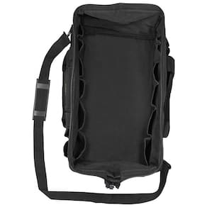 Bolsa de ferramentas com 25 bolsos 25 bolsos e um grande compartimento interno para ferramentas e peças Bolsos internos grandes a bolsa de ferramentas permite que você carregue tudo o que você precisa para o trabalho, desde pequenas ferramentas manuais até ferramentas maiores ou equipamentos pessoais. Bolsa de ferramentas de boca mega estrutura de metal interna mantém a bolsa aberta para fácil acesso Alças e alça acolchoadas a bolsa é confortável para transportar do caminhão para o local de trabalho Marca: Não Informado