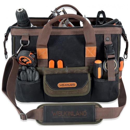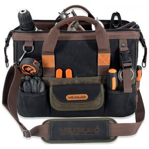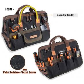 Tela encerada de 590g. Resistente Esta bolsa de ferramentas resistente constrói a lona encerada robusta de 590g e o zíper de metal. Portanto, esta sacola de ferramentas com alça resiste a tudo o que vier na frente do lado de dentro e do lado de fora. Acesso rápido A boca aberta da bolsa de ferramentas pop up emoldurada IronWire ajuda a manter esta bolsa de ferramentas rígida aberta e protegida de desmoronar enquanto você a procura e zena. Uma bolsa de ferramentas de lona preta robusta para Pro. Mantenha se organizado esta bolsa de ferramentas vem com 32 opções de bolsos para todas as suas ferramentas. E, esta bolsa de ferramentas pode abrir muito para que você possa encontrar rapidamente a ferramenta exata sem se atrapalhar. Confortável para transporte Esta mochila de ferramentas possui uma alça de pé com um aperto sólido. E esta bolsa de ferramentas dura vem com uma alça de ombro bem acolchoada para aliviar a carga e liberar suas mãos. zenamento Este saco de zenamento de ferramentas possui uma base robusta e acolchoada para proteger as ferramentas do terreno acidentado. E, a bolsa de ferramentas de tecido tem um invólucro robusto de tela encerada para manter os dispositivos s Marca: Não Informado
