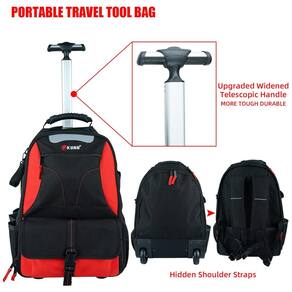 PEÇA TELESCÓPICA A mochila de ferramentas rolantes profissional KUNN fornece alça e rodas telescópicas reforçadas e espessas para se adaptar ao local complexo, que pode ser retraída em diferentes comprimentos para atender às suas necessidades. FUNDO RESISTENTE Esta mochila de ferramentas tem um fundo resistente e durável com dois pés e rodas de borracha antiderrapantes para proteção extra. Sua mochila de ferramentas com rodas pode descansar com segurança e firmeza em terrenos complexos. GRANDE CAPACIDADE A bolsa de ferramentas KUNN inclui 37 bolsos, mangas e presilhas multiuso. Vários espaços de zenamento para ajudá lo a organizar ferramentas, peças e acessórios. Esta bolsa de ferramentas também inclui um compartimento para laptop de . PROJETO ÚNICO A bolsa de ferramentas rolante oferece um amplo espaço aberto para acesso rápido aos seus acessórios de ferramentas favoritos. Bolsos internos removíveis para organização de ferramentas podem ser movidos e s separadamente. Design amigável da almofada traseira, vire a almofada traseira para baixo para cobrir as rodas para manter suas roupas limpas Marca: Não Informado