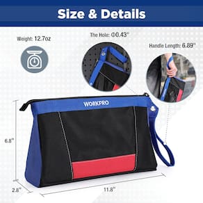 Apresentamos nossas bolsas de ferramentas versáteis e duráveis, perfeitas para profissionais e entusiastas de bricolage. Projetadas com conveniência em mente, nossas bolsas de ferramentas são equipadas com vários compartimentos e bolsos para ajudar você a manter suas ferramentas organizadas e facilmente acessíveis em movimento. Nossas bolsas de ferramentas apresentam uma infinidade de bolsas de ferramentas e pequenas bolsas para ajudar você a organizar até mesmo as menores partes do seu kit de ferramentas. Com nossa bolsa de lápis extragrande e bolsa de suprimentos de arte, você pode carregar facilmente todos os seus suprimentos de esboço e desenho, tornando-a uma bolsa de ferramentas ideal para artistas. Nossas bolsas de ferramentas são feitas de materiais de alta qualidade para garantir que durem muito tempo, mesmo sob as condições de trabalho mais exigentes. Além disso, com sua estrutura robusta, nossas bolsas utilitárias masculinas podem suportar os rigores do uso frequente sem nunca quebrar. Nossa linha de produtos inclui uma variedade de pequenos organizadores de bolsas de ferramentas, perfeitos para profissionais que precisam carregar apenas os itens essenciais em um bolso com zíper. Além disso, nossas pequenas bolsas de ferramentas são perfeitas para acessar rapidamente ferramentas em movimento, enquanto nossas bolsas utilitárias maiores oferecem amplo espaço para ferramentas e equipamentos maiores. Seja você um empreiteiro, eletricista ou entusiasta de bricolage, nossa bolsa de ferramentas para escritório pequeno é a solução perfeita para manter suas ferramentas organizadas e em boas condições. Então, por que esperar? Invista em uma bolsa de ferramentas WorkPro hoje e experimente a conveniência de ter todas as suas ferramentas na ponta dos seus dedos enquanto estiver no trabalho! - Materiais premium: a bolsa de ferramentas é composta principalmente de tecido 600D resistente a rasgos, oferecendo durabilidade e confiabilidade incomparáveis. Costura fina em toda parte e um forro pesado tornam a bolsa extremamente resistente e duradoura, evitando que ferramentas e peças entreguem - Zíper de alta qualidade: o zíper da bolsa de ferramentas WORKPRO desliza muito suavemente. O zíper de alta qualidade aguenta sem problemas, mesmo após centenas de aberturas e fechamentos - Design de malha transparente: medindo 18 cm x 30 cm com uma parte inferior de 7,6 cm, oferece uma grande capacidade para organizar várias ferramentas e dispositivos. Com malha de nylon transparente no meio, você pode ver rapidamente o que está dentro sem abrir a bolsa com zíper. Conveniência e funcionalidade nesta solução essencial de armazenamento de ferramentas - Transporte conveniente: este pacote de 2 bolsas com zíper de 30 cm é ideal para peças pequenas. O design da alça longa facilita o transporte e a suspensão. Com um design compacto e portátil, estas bolsas de ferramentas são perfeitas para profissionais - Uso multifuncional: a bolsa de ferramentas utilitária com zíper de 30 cm não é apenas para armazenamento de ferramentas, mas também pode ser usada como um organizador para eletrônicos, acessórios, artigos de papelaria e muito mais. Adequado para todos.