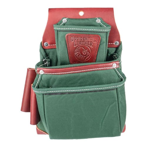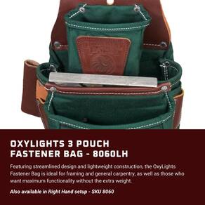 Occidental Leather Bolsa de fixação OxyLights Pro com 3 bolsas – verde, mão esquerda – 9 bolsos e porta-ferramentas – Feita nos EUA